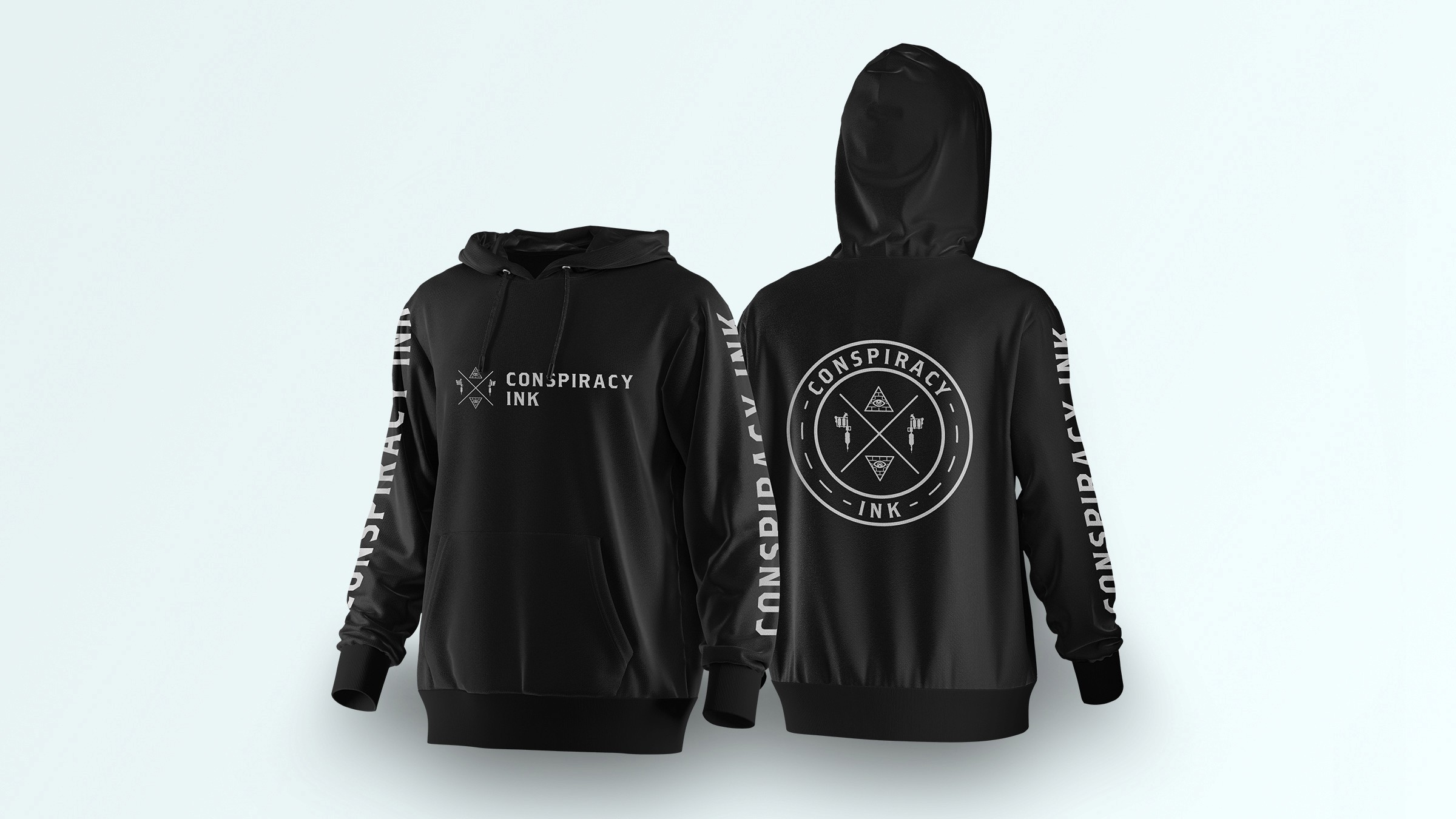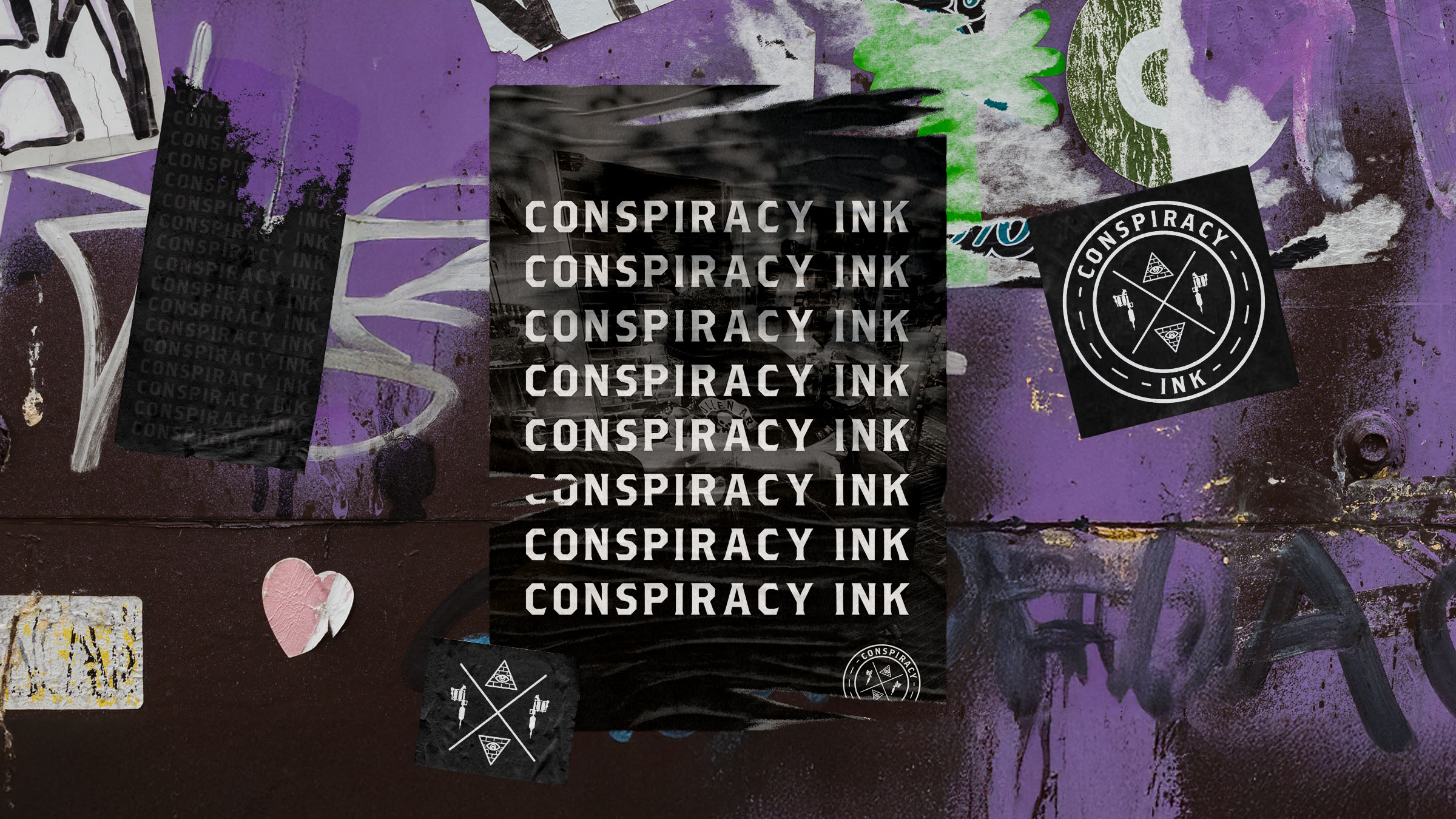 Striking Logo Design: The final mark integrated conspiracy-inspired icons, including subtle symbols and enigmatic elements, reinforcing the brand’s unique identity. Tattoo gun elements were seamlessly incorporated, maintaining a strong connection to the craft.