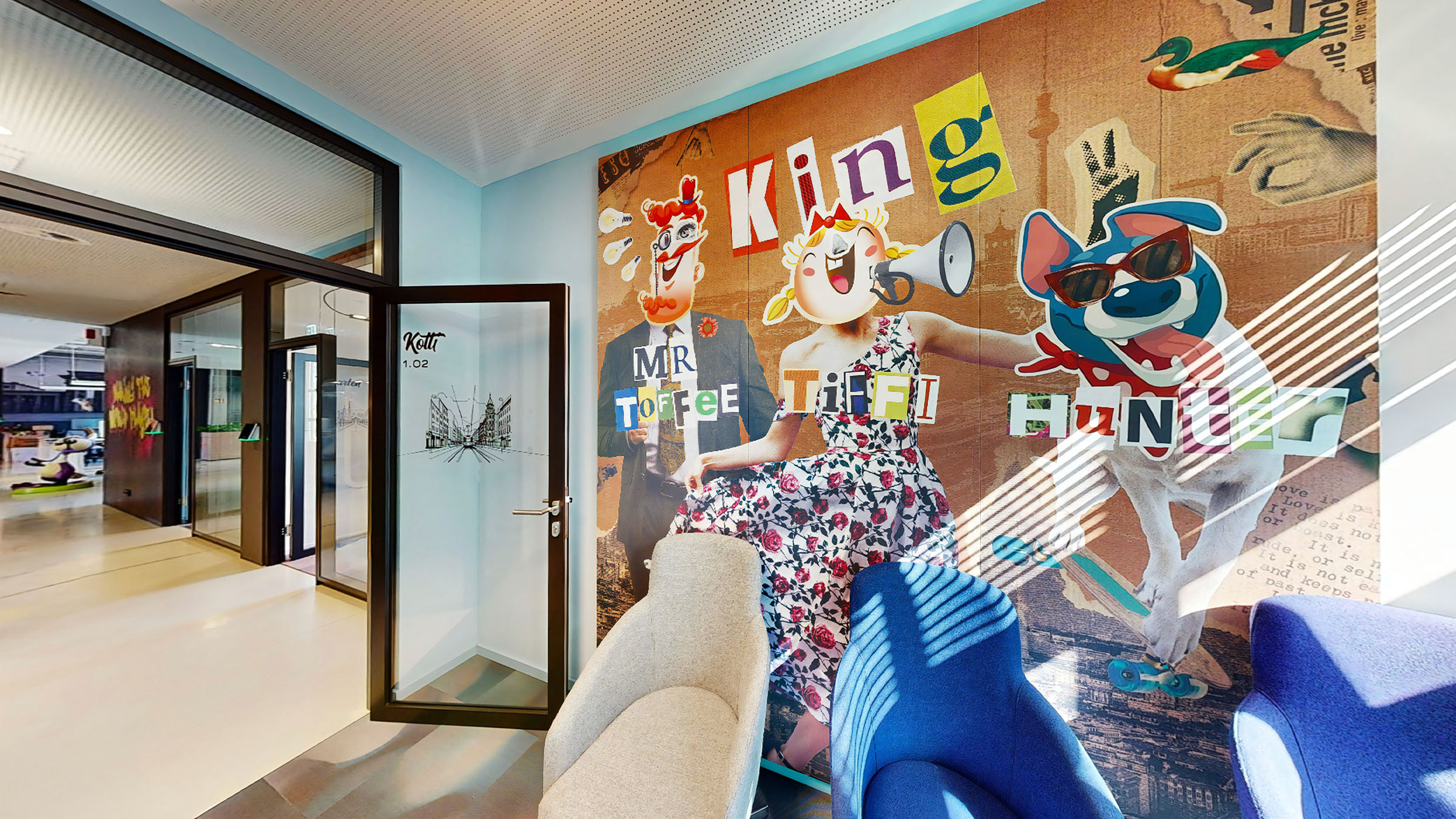 Deliver the creative direction, art direction and hands-on design for a bespoke environmental graphics system for the new Berlin office, while working with King Digital Entertainment, part of Activision Blizzard King, owned by Microsoft Gaming. Create a location-led visual identity that moved beyond the playful aesthetic used in other offices, embracing Berlin’s cultural energy while inspiring creativity, encouraging return-to-office and delivering an immersive brand experience across the workplace.