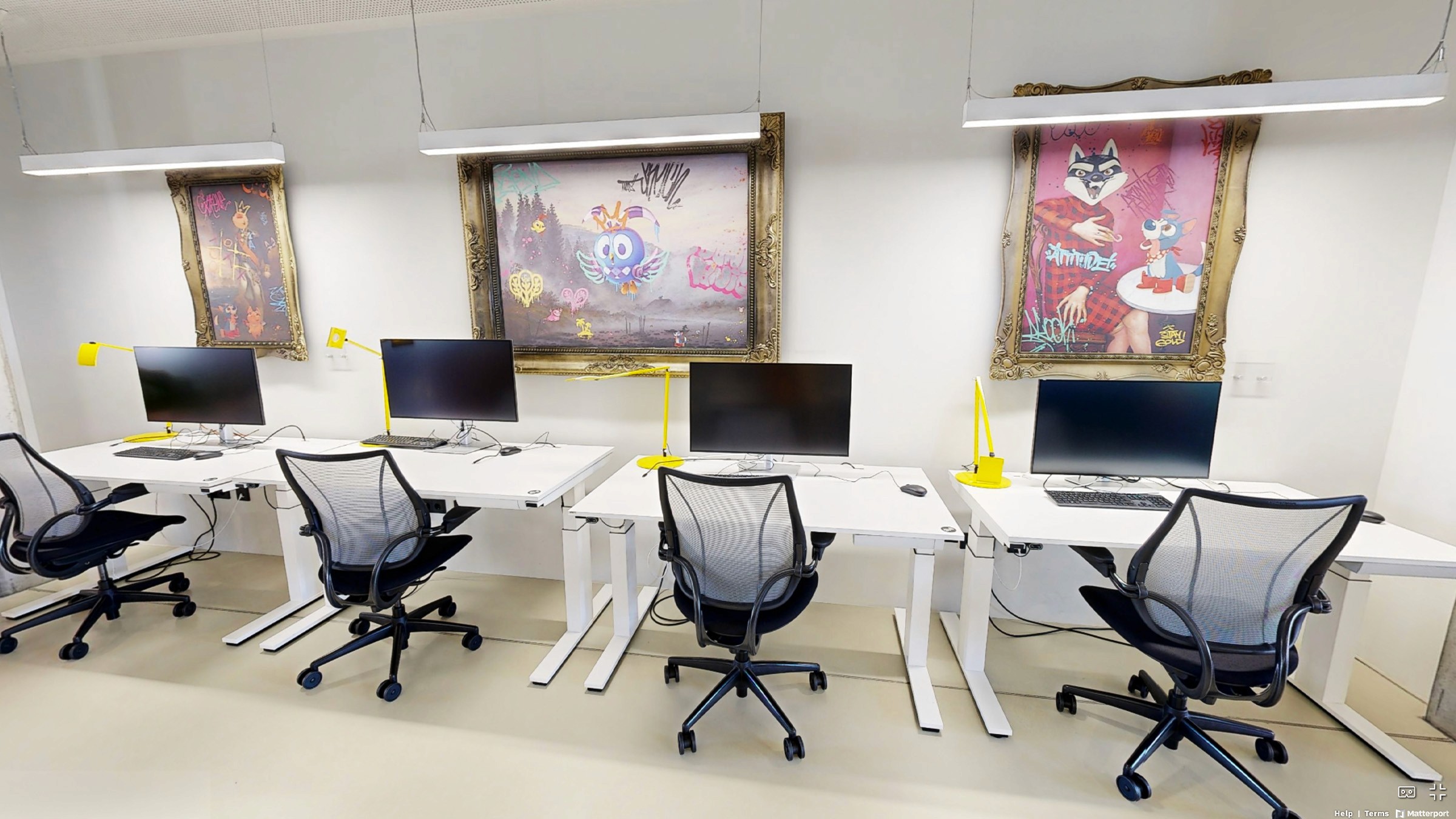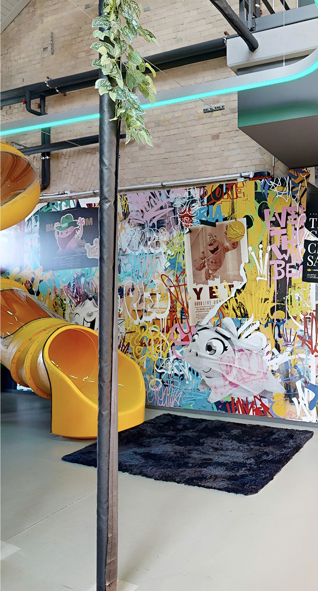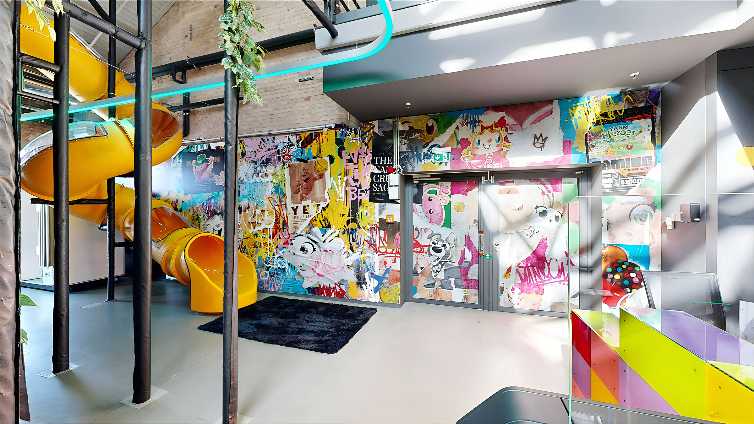 Designed and executed the reinterpretation of classical artwork using graffiti and contemporary digital collage techniques, alongside the creation of typographic wayfinding to define zones and improve navigation throughout the office.