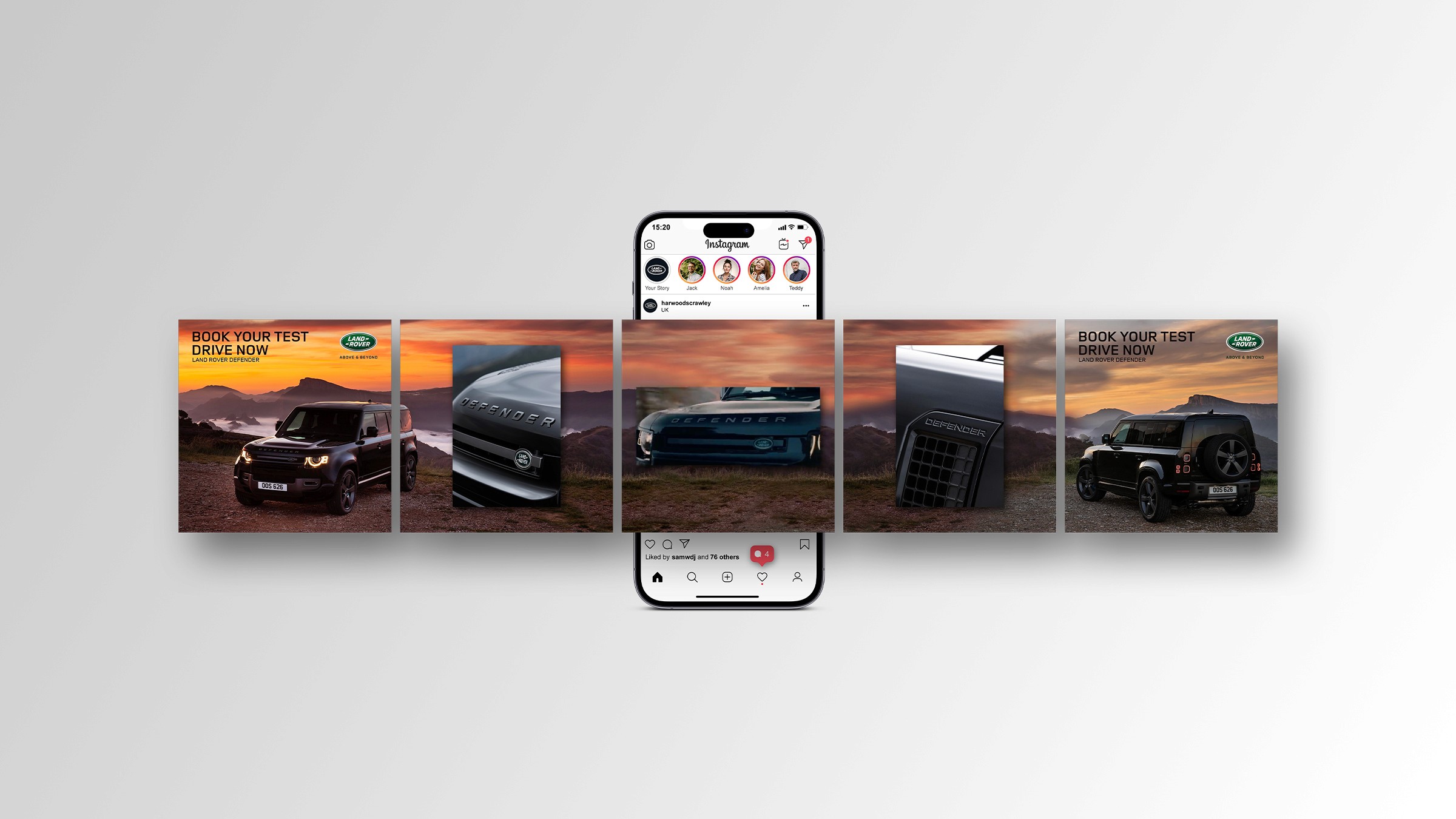 While working in-house at Harwoods Group, partner with Land Rover to elevate brand presence and engagement across dealership marketing channels, including digital and OOH. Create a campaign that reinforces Land Rover’s premium identity while driving engagement, conversions and showroom visits across the Harwoods network.